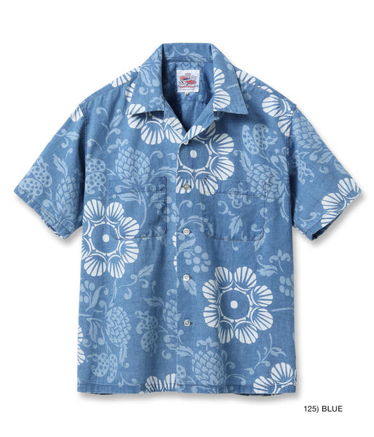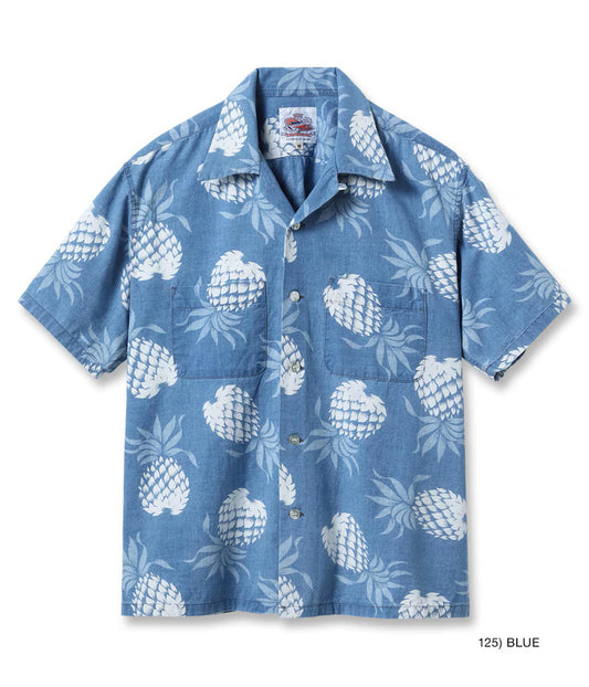 DK39641 / SUNSURF DUKE KAHANAMOKU INDIGO COTTON HAWAIIAN SHIRT “DUKE'S PINEAPPLE”