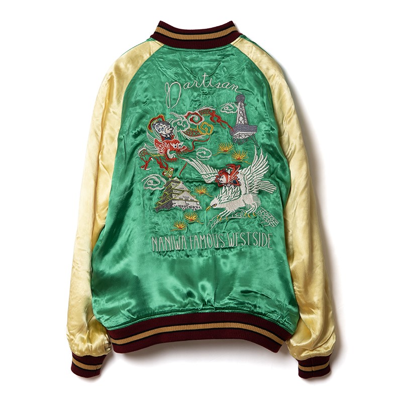 Shortly after World War II, American soldiers stationed in Japan began ordering embroidered designs at tailor shops near the Yokosuka U.S. Naval Base as souvenirs. These designs often featured Oriental patterns or the emblems of their units and bases, and this is said to be the origin of the "Suka-jan" (souvenir jacket).