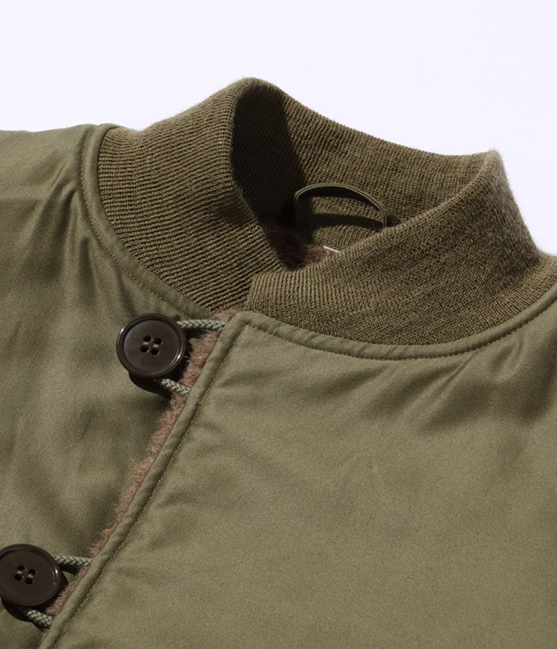 The M-1943 Field Jacket incorporated a layering system that allows for a thermal liner in winter. Alpaca wool pile was used for the lining of the liner to keep the wearer warm. The M-43 field jacket with this layering system was so influential that it changed the direction of subsequent jackets. During World War II this liner was not allowed to be worn alone, but the photographic records show that it was, perhaps because it became a retired model during the Korean War. The combination layer system used in the M-43 has had a tremendous impact on today's civilian outdoor apparel.