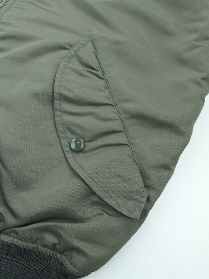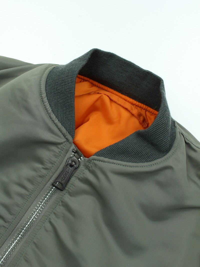 Over the years, **TOYS McCOY** has faithfully reproduced McQueen’s MA-1 (SPEC MIL-J-8279E) several times. For this version, the brand has modeled it after one of the jackets specially prepared for the film — a piece distinguished by its rib knit trim in a grayish tone.