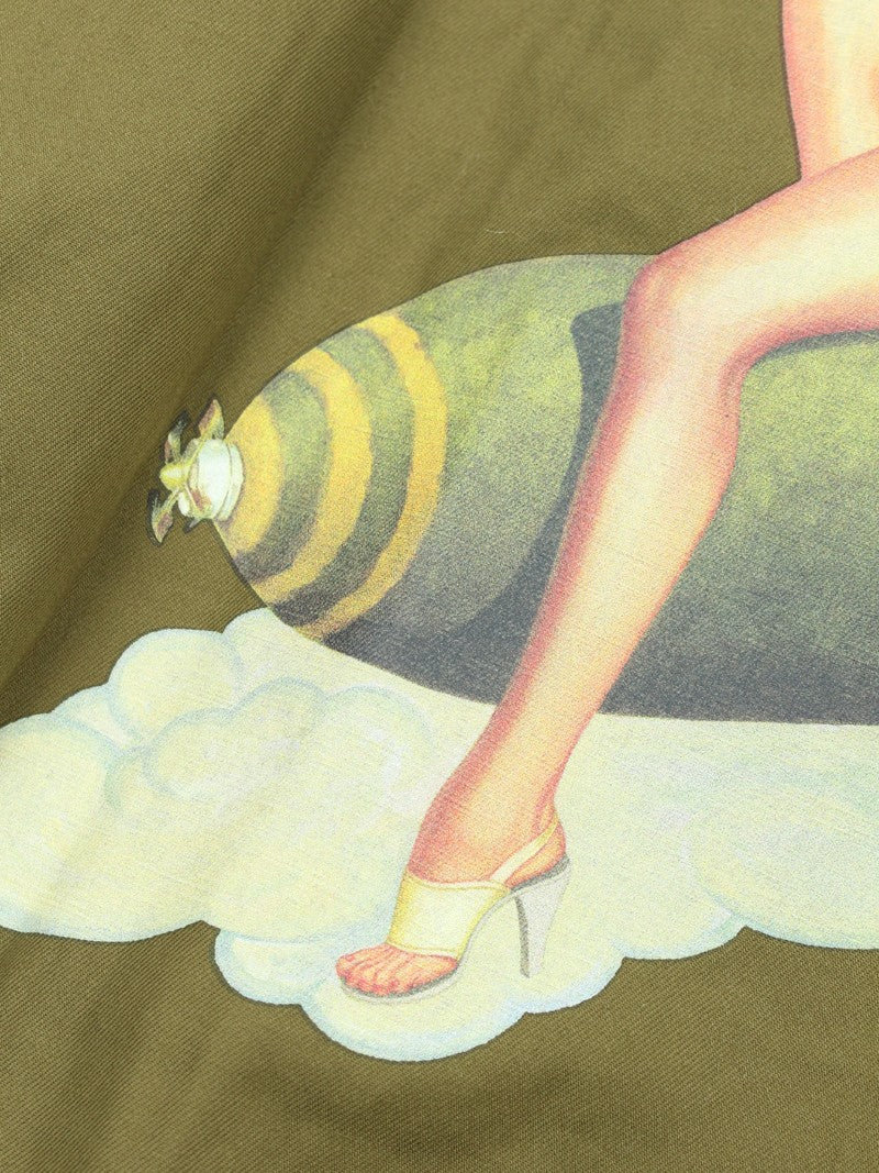 The back showcases a stunning pin-up girl design—an enhanced recreation of the nose art and jacket back paintings worn by the aircrew of the era—adding a bold and nostalgic finishing touch to this historically inspired piece.