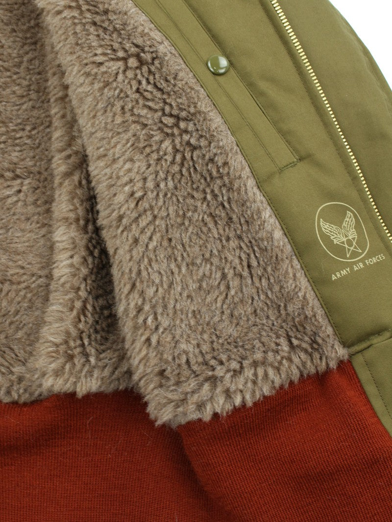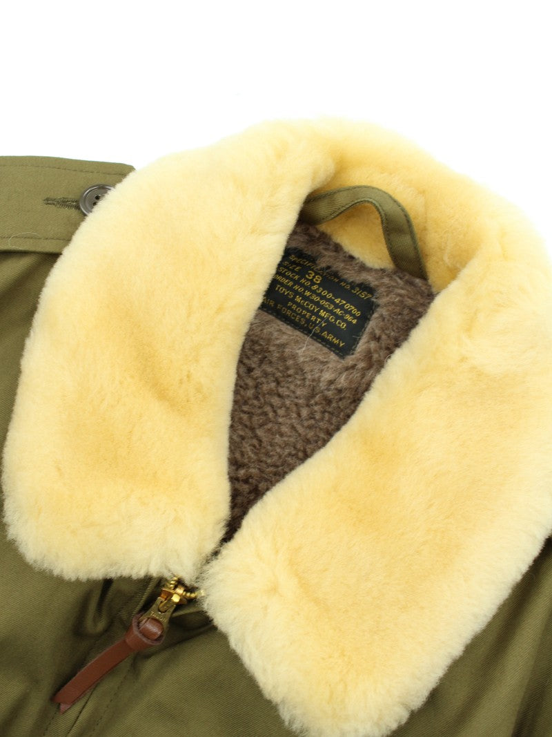 The B-10 flight jacket — the U.S. Army Air Forces’ first cotton flight suit — was mass-produced over a brief period between 1943 and 1944. 2025 model features a natural-colored mouton fur collar, faithfully reproduced from certain original contractors, and distinctive red ribbed cuffs and waistband that hint at influence from the Navy’s G-1 jacket. Designed for superior mobility, the pattern allows unrestricted movement, while the combination of alpaca wool pile lining and mouton collar provides exceptional warmth, making it a highly dependable outer layer even in the harshest winter conditions.