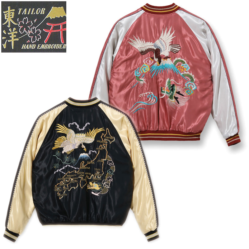 TT15390-119 / TAILOR TOYO Early 1950s Style Acetate Souvenir Jacket “JAPAN MAP” × “EAGLE & DRAGON”