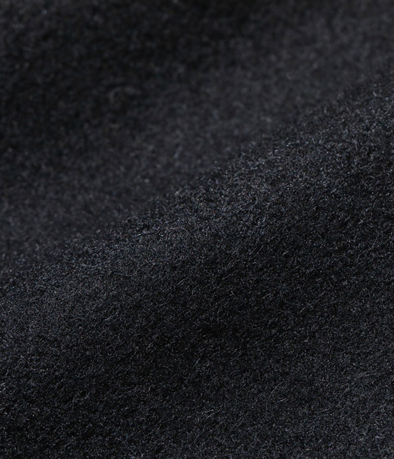 The original model of the commonly known “pea coat” is said to have existed in the 18th century. The name originated from the Dutch word “piijekker,” in which “pii” referred to coarse woolen item and “jekker” referred to jacket. Pea coat style coats were worn by a number of militaries in European countries. This pea coat is from the 1910s that the U.S. Navy issued to petty officers. Pea coats of the 1910s are characterized by the use of highdensity, thick melton wool material and anchor buttons engraved with 13 stars of the seal of the United States. The 13 stars represent the 13 colonies that existed when the United States declared independence in 1777. While it is not known exactly when the U.S. Navy adopted the pea coat, the overcoat was already port of the petty officer dress code during World War I. A large collar was designed so that officers working on the sea can cover their faces with the collar and fully protect their faces from strong winds. In addition, slittype pockets were attached vertically to serve as hand warmer pockets to warm up cold hands.From the 1930s and onwards, as a result of reviewing productivity and cost, lighter fabrics were utilized, and the 13-star buttons were eliminated.This coat is designed to be slightly shorter in length than the original governmentsupplied pea coats so that it will have mobility. Also, to have entrances of the pocket reinforced with the leather welts.
