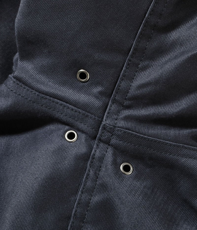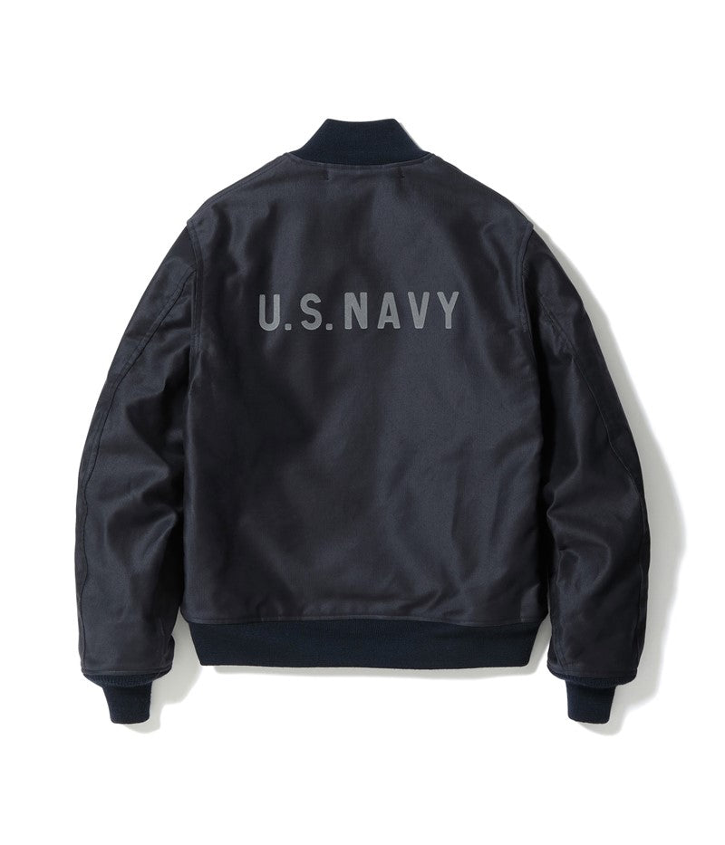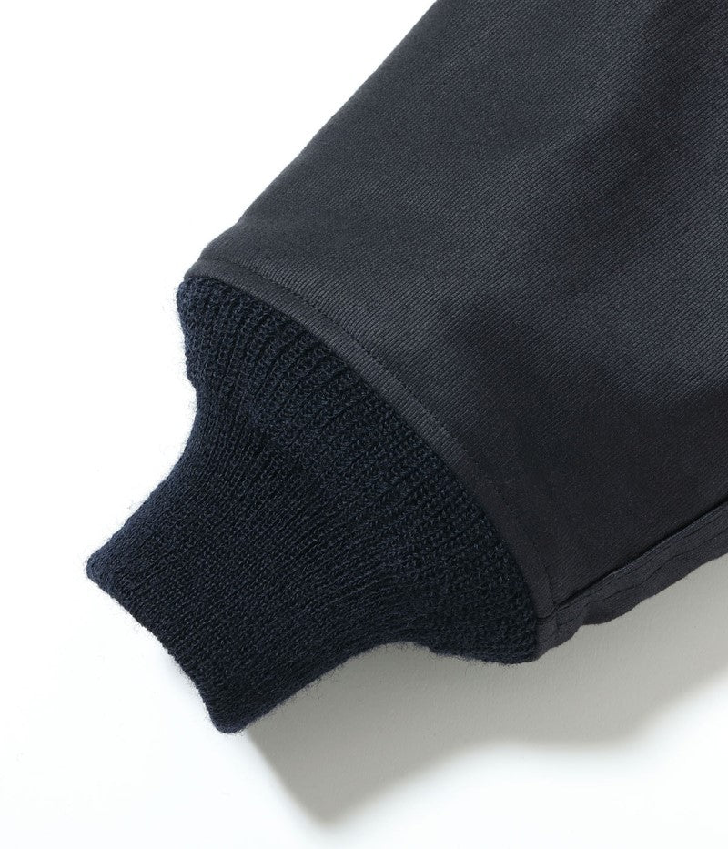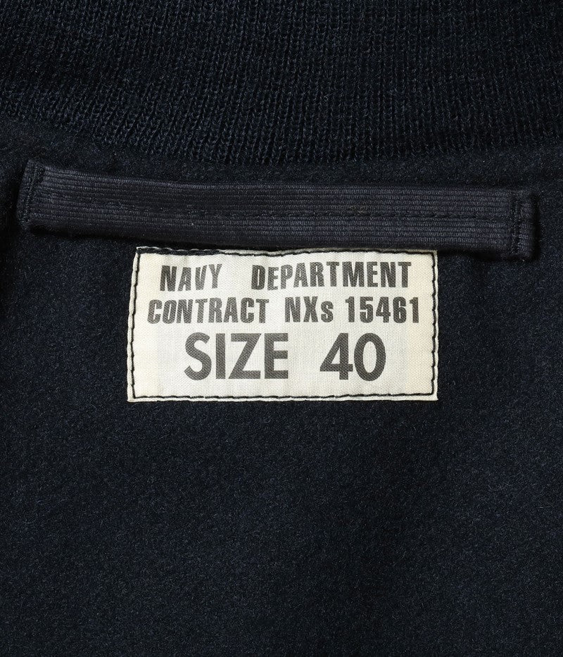The deck jacket with hook closure was a later model adopted after zip closures to prevent rusting from sea water. The hooks are designed for easy operation even with gloves. The material remained the same as the zip model, and the front wind flap had a doublelayer structure to block wind. Designed for a loose fit without the snugness of flight jackets, the deck jacket allowed easy movement and high insulation, making it an excellent piece of workwear for the Navy.