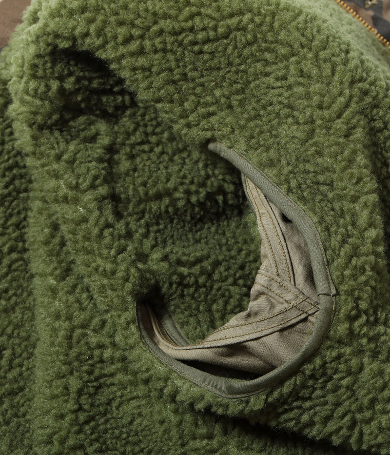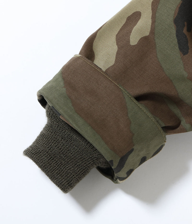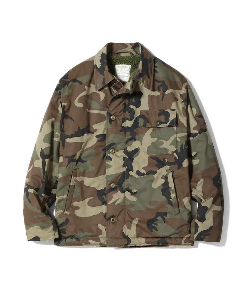 The Navy’s A-2 deck jacket, which succeeded the N-1 deck jacket, was issued in the early 1960s and remained in service for nearly 30 years, making it a long-lasting jacket. Initially, in the 1960s, its outer shell was made of heavy cotton back satin, but from the 1970s, it was improved to a lightweight, durable cotton-nylon blend fabric that dries quickly even when wet. Along with the fabric change, the construction was also revised for easier production: chest pocket flaps became straight, and sleeve cuff reinforcements were simplified. Deck A-2 jackets made with woodland camouflage fabric were produced in the 1980s. Although not very old, they are rare and fetch high prices on the vintage market.