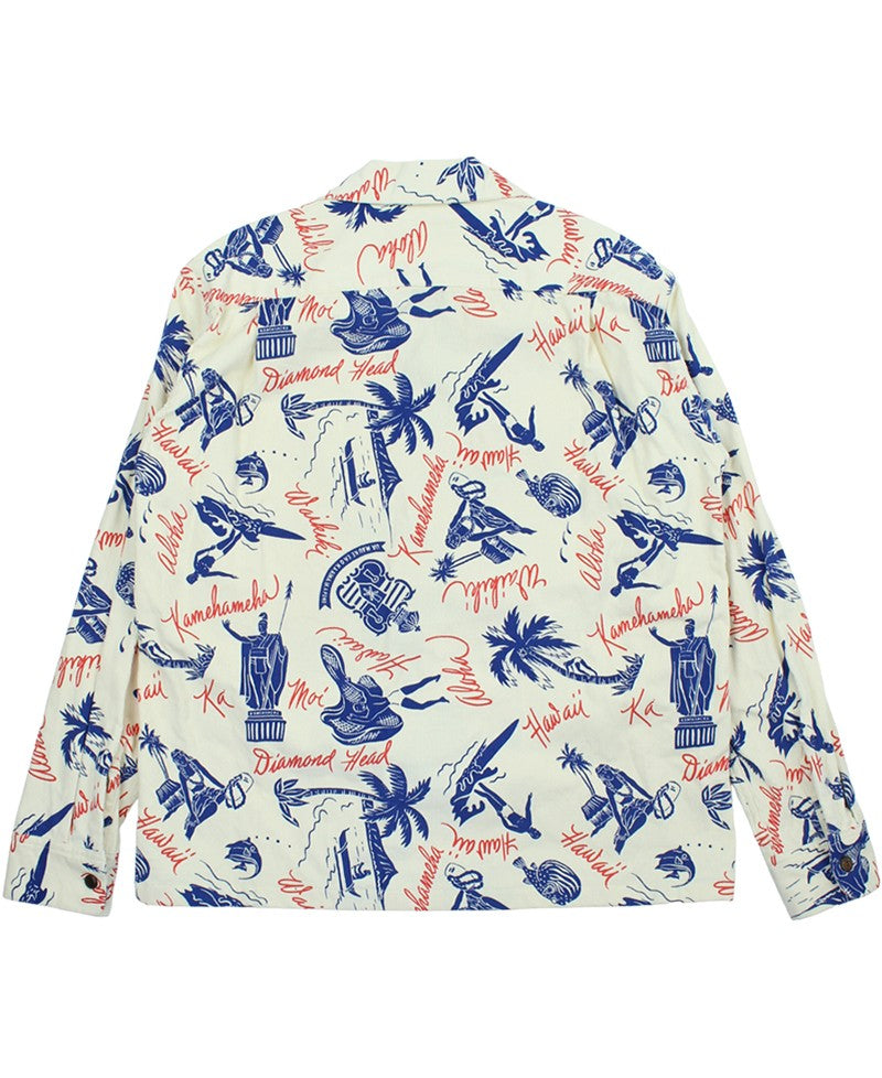 The fabric features the rich warmth and softness unique to fine corduroy, offering a distinctly different character from traditional rayon aloha shirts. With its moderate thickness and gentle hand, it wears comfortably as an inner layer beneath a jacket, yet retains a strong presence when worn on its own.
