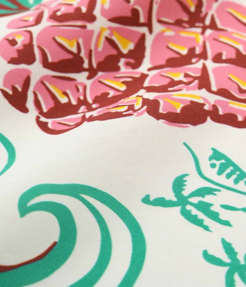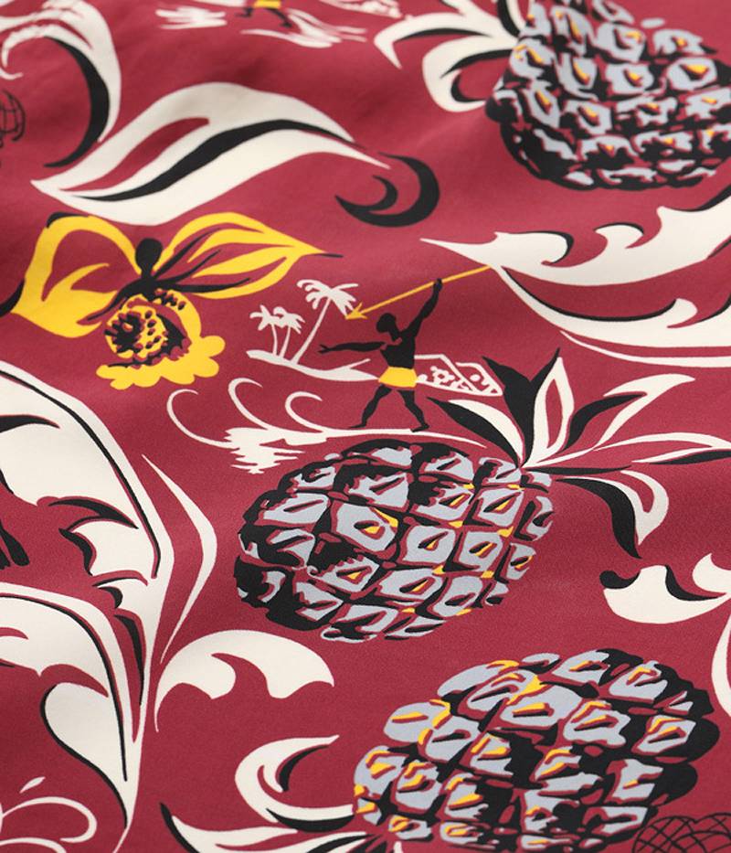 In the 1950s, Hawaii as a tropical paradise continued to develop, attracting visitors not only from the U.S. mainland but also from all over the world. Aloha shirts were used as Hawaii's icon and played a major role as the mainstay of gifts for tourists. The boom spread to the U.S. mainland, establishing a category called resort wear. One of the characteristics of mainland brands of this period is that, unlike those produced in Hawaii, the motifs on aloha shirts are smaller in size to increase production efficiency. In this way, they made it easier to create patterns, etc.