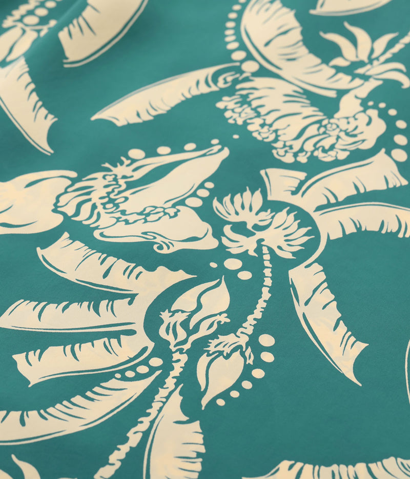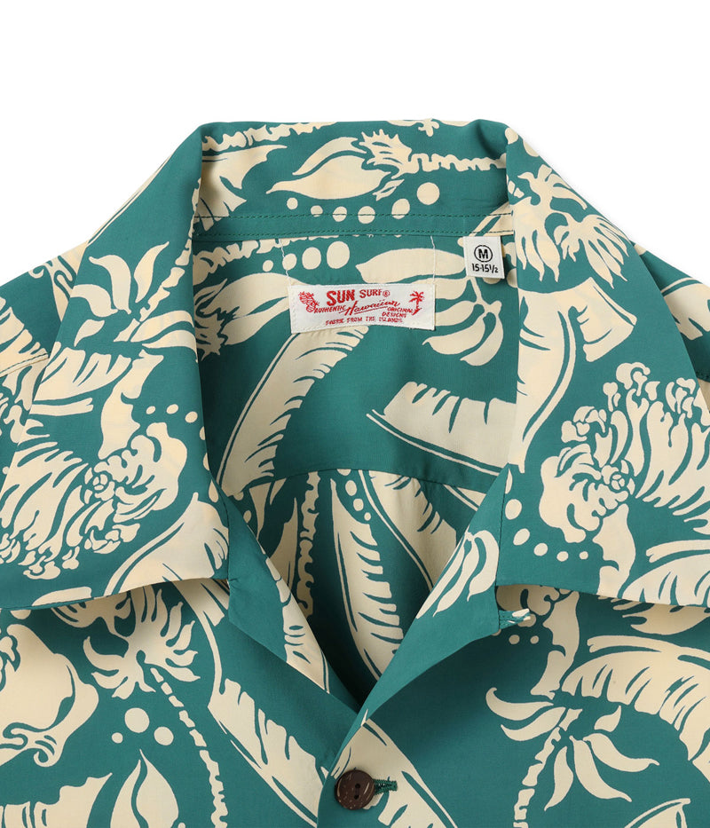 “SUN SURF” primarily reproduces the rayon Hawaiian shirts of their golden age from the 1930's to the 1950's. These Hawaiian shirts are often called ?the vintage,' and since its foundation in the 1970's, the brand has collected thousands of such vintage shirts and even analyzed them in order to manufacture the authentic replicas. In addition to the shirt layout designs, their rich and bright coloration is precisely reproduced by using the traditional printing techniques, such as discharge or over-printing. Thus a great range of these beautiful garments, or “the art of wear” in other words, are proudly offered by SUN SURF with a strong hope that more people can feel and enjoy the value of true vintage Hawaiian shirts.