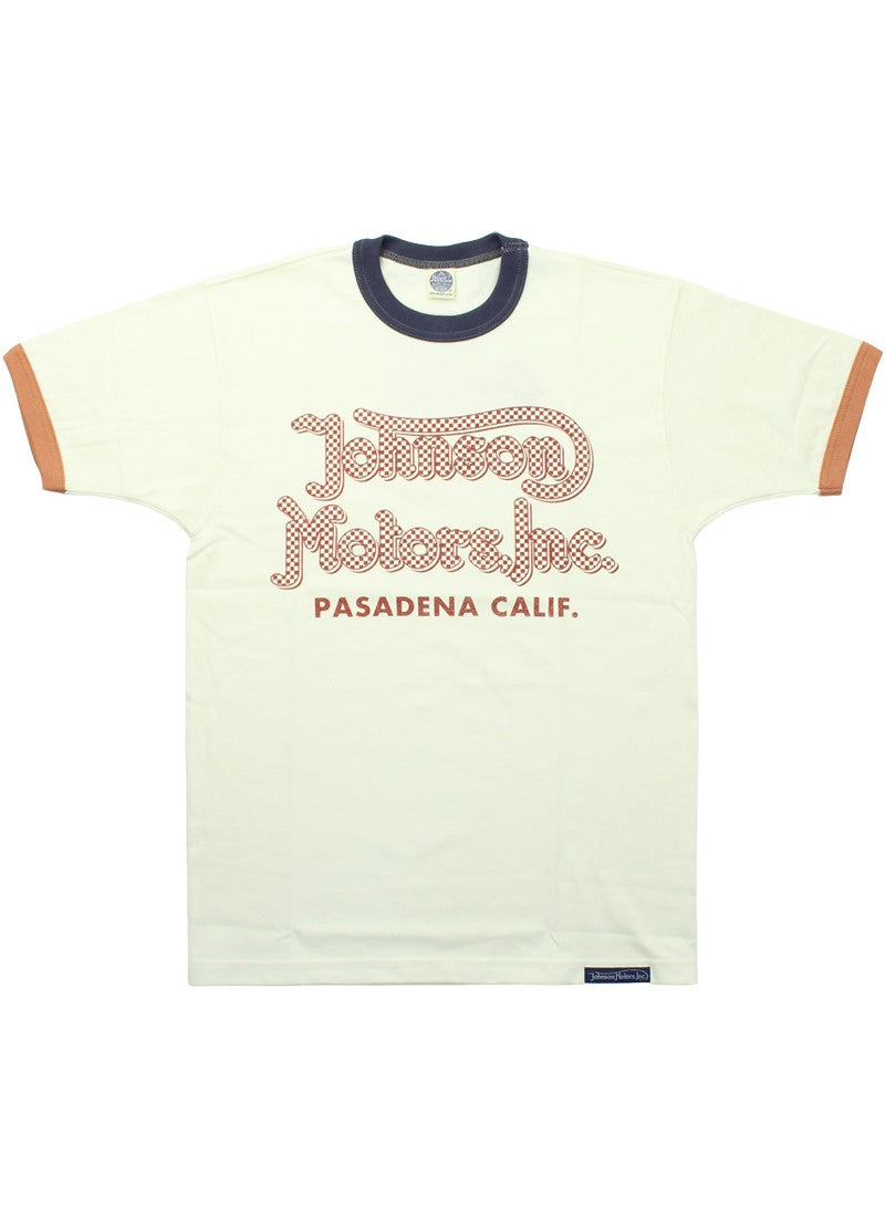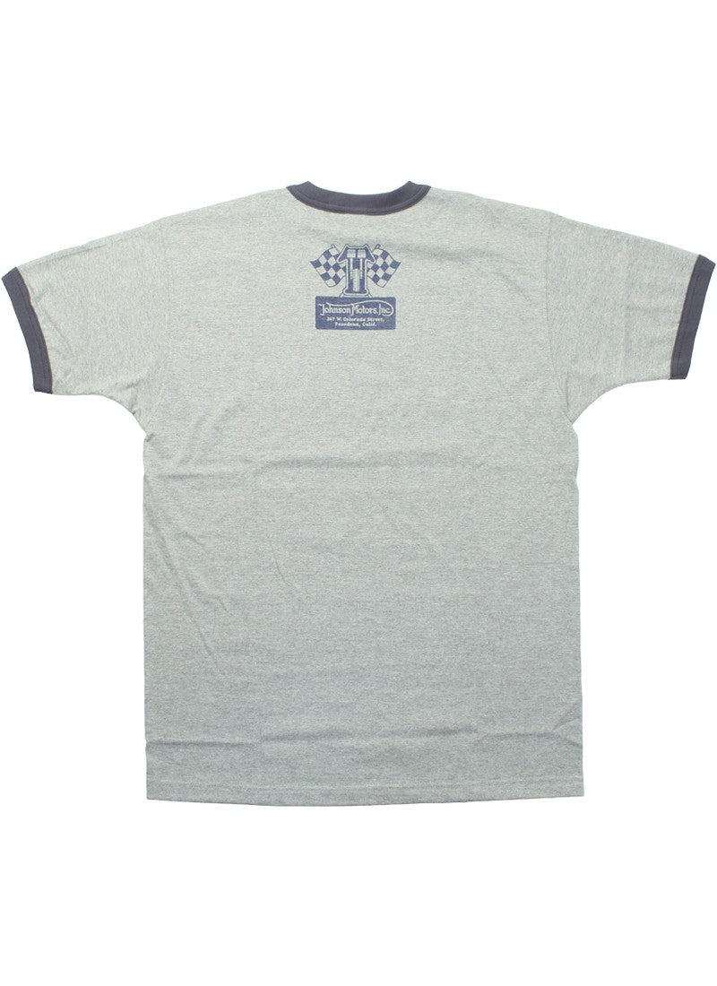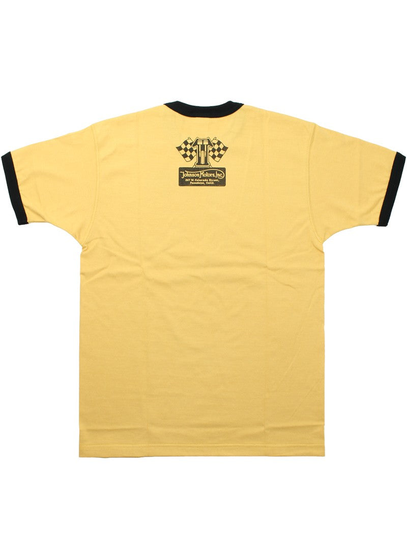 This ringer T shirt showcases the iconic “JOHNSON MOTORS, INC.” logo rendered in a bold checker?flag motif. Far more than a motorcycle dealer, Johnson Motors was a driving force in the West Coast racing scene, helping to define mid century American motorsport culture. The graphic and color palette pay tribute to that storied heritage, channeling the adrenaline and spirit of vintage track days into a wearable classic.