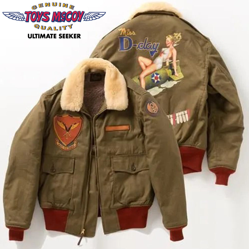 The back showcases a stunning pin-up girl design—an enhanced recreation of the nose art and jacket back paintings worn by the aircrew of the era—adding a bold and nostalgic finishing touch to this historically inspired piece.