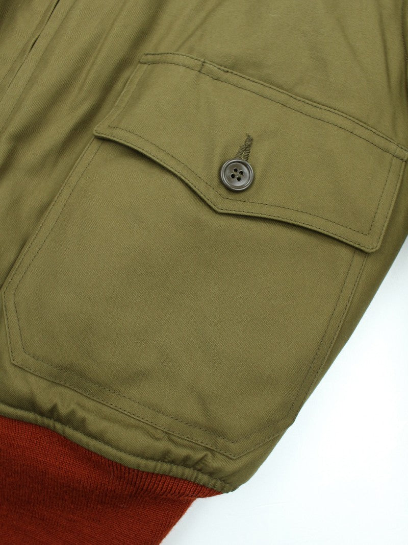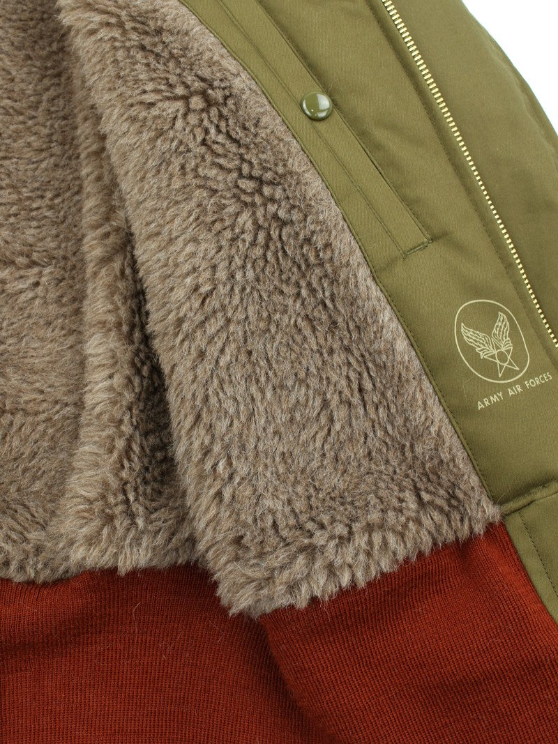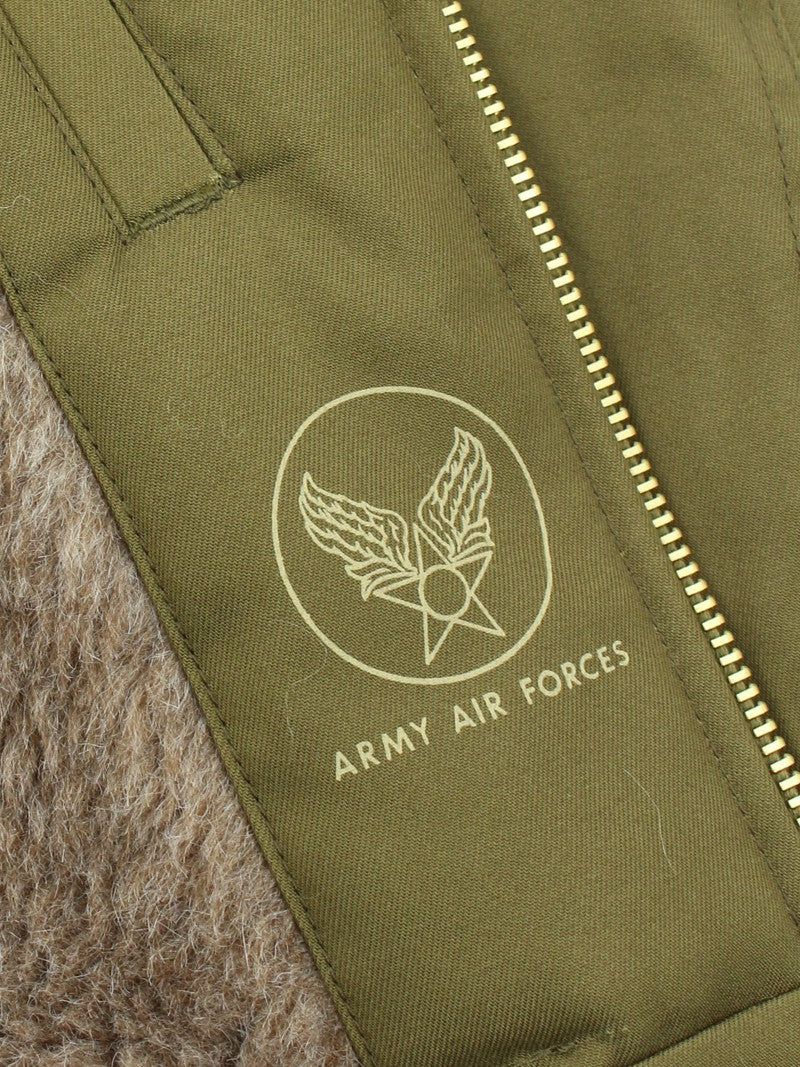 The B-10 flight jacket — the U.S. Army Air Forces’ first cotton flight suit — was mass-produced over a brief period between 1943 and 1944. 2025 model features a natural-colored mouton fur collar, faithfully reproduced from certain original contractors, and distinctive red ribbed cuffs and waistband that hint at influence from the Navy’s G-1 jacket. Designed for superior mobility, the pattern allows unrestricted movement, while the combination of alpaca wool pile lining and mouton collar provides exceptional warmth, making it a highly dependable outer layer even in the harshest winter conditions.