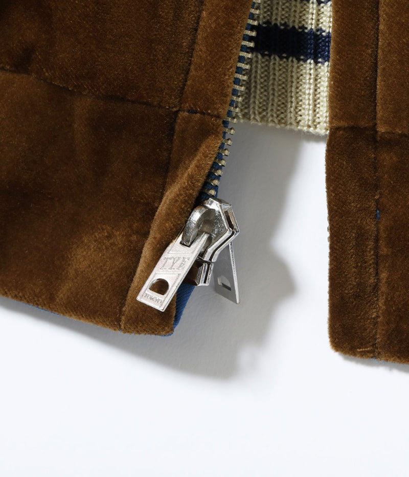 While most early souvenir jackets were made from reversible acetate fabric, there also existed variations crafted from velveteen—a plush fabric with a soft, brushed texture that offered a richer, more luxurious appearance. These versions were often padded for enhanced insulation, with the acetate lining featuring quilting to secure the padding and provide additional warmth and structure.