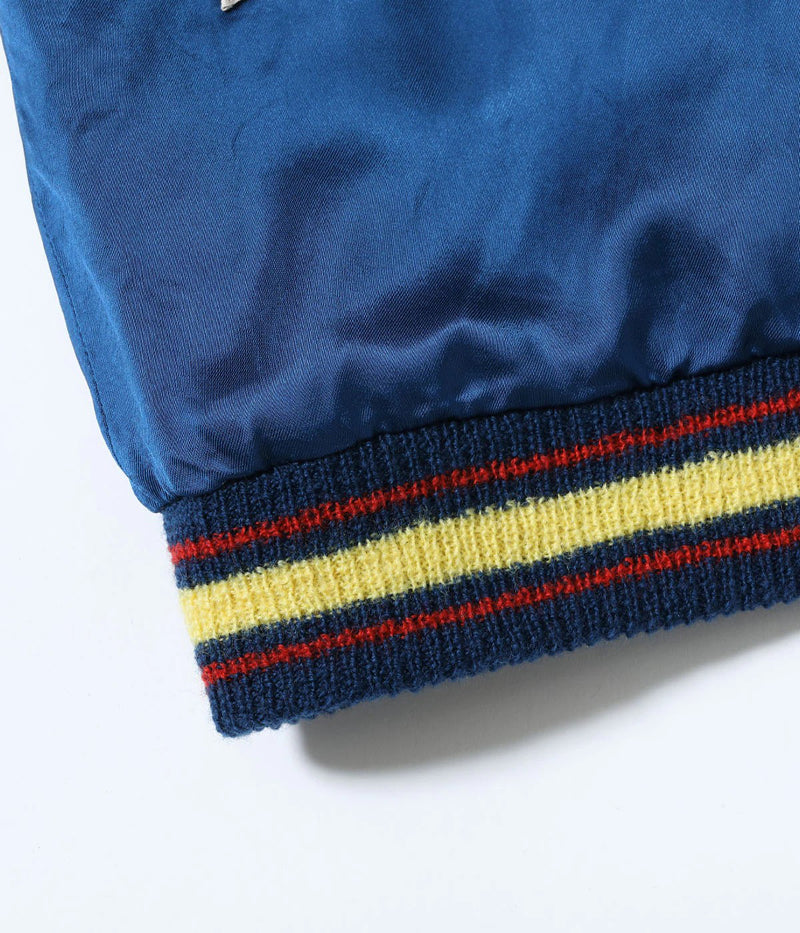 The “Special Edition” collection is a superior version of Tailor Toyo Sukajan that is an absolute reproduction of vintage souvenir jackets originated in the early days of post WWII. The intricate artworks are depicted in details by the experienced craftsmen with the vintage embroidery machines. The 100% wool rib that is purposely knitted loose by the primitive knitting machine in the same manner the rib of vintage jackets was done. The zipper with two pullers meant for reversible jacket is duplicated by using the 50-year-old vintage fastener machines. The special jacket has a woven label of “Kosho & Co.” which is a predecessor company of Toyo Enterprise, all the details of the day built in.