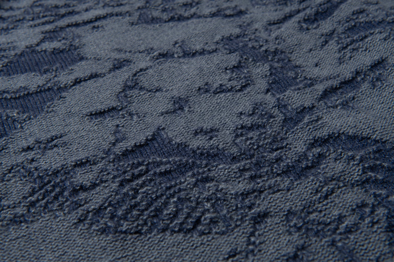 しっかりとした厚みのあるカーディガンで、2色の糸とジャガード編みを駆使し、凹凸を出して柄が浮き上がるように仕上げています。