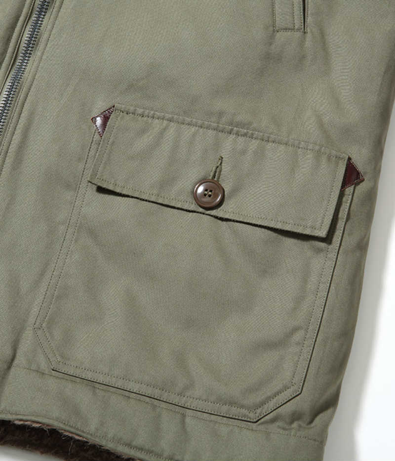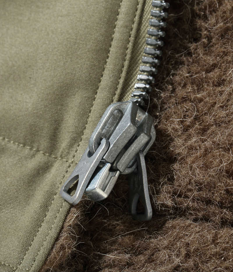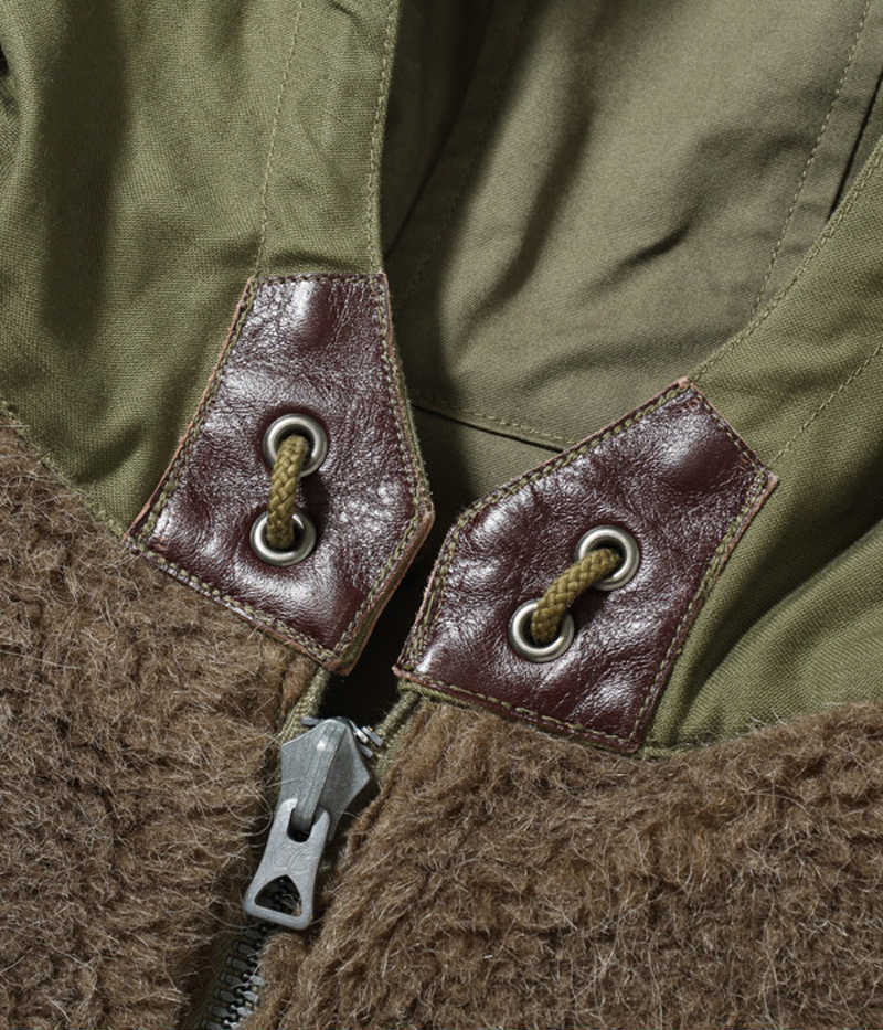 | 米陸軍航空隊は1944年、整備士用の防寒ジャケットとしてD-2パーカーを採用した。前モデルのD-1はシープスキン製で重量面と動きやすさが見直され、コットン地にアルパカウールパイルのライニングを持つ仕様に改良された。正式に採用されたD-2パーカーはプルオーバー式であったが、このパーカーは前開きにして着脱を容易にし、更にはリバーシブル仕様としてD-2パーカーを昇華させたオリジナルの民間モデルである。 | |||||||||||||||||||||||||||||||||||||