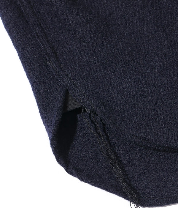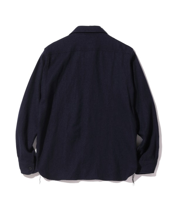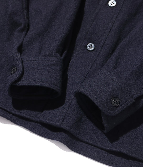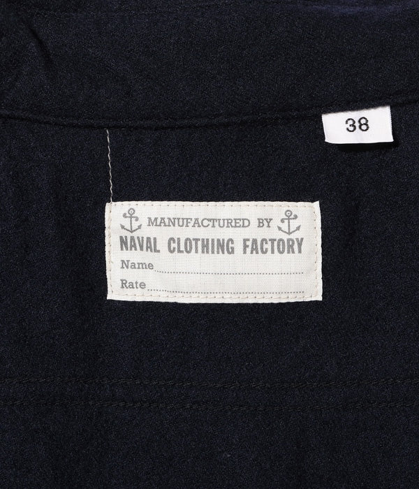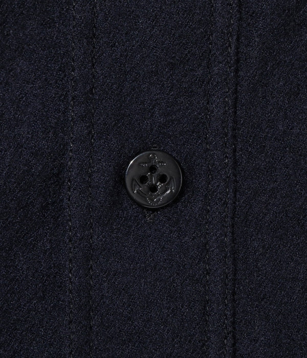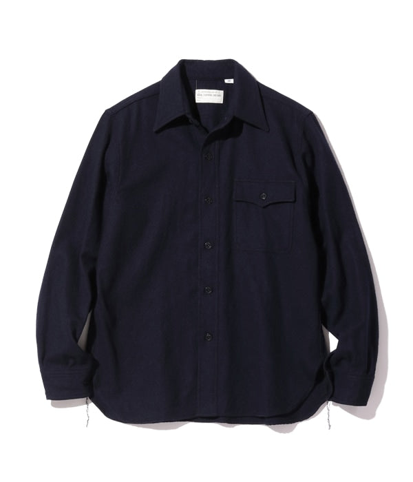 一般的にC.P.O.と呼ばれるこのシャツは『チーフ・ペティ・オフィサー』の略で米海軍では曹長を意味している。即ち、曹長クラスの身分の者が選ぶことの出来るブルーフランネルシャツを意味している。曹長達の公の場でのレギュレーションはブラックタイを着用し、ネイビートラウザ-にタックインするスタイルであった。ライトウェイトの圧縮ウール製C.P.O.シャツは、海水や雨にされされても体内が冷えにくいという機能を備えていた。米海軍に於いての標準採用は不明だが、1930年代にはチンストラップの付いたタイプも存在した。このC.P.O.シャツには両ポケットの型やフラップの形状の違いなど幾つかのバリエーションが存在している。今回リプロダクトに踏み切ったのは左胸のみのポケットで、そのフラップの形状はウィングを切っており、最もシンプルで洗練されたC.P.O.であることがその理由である。