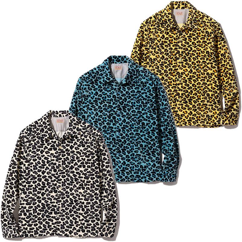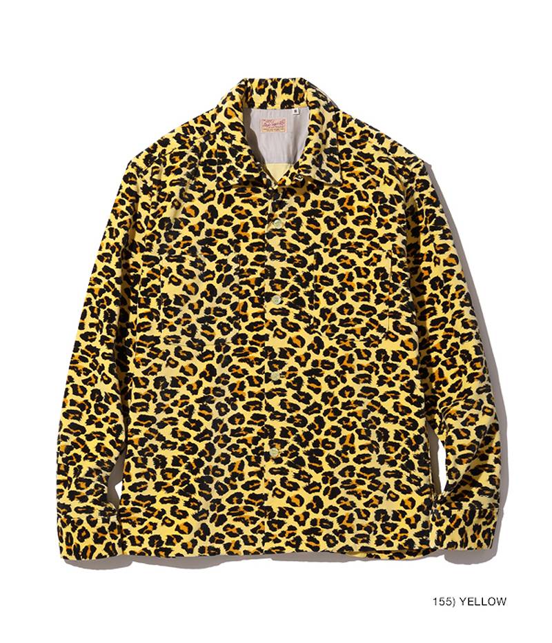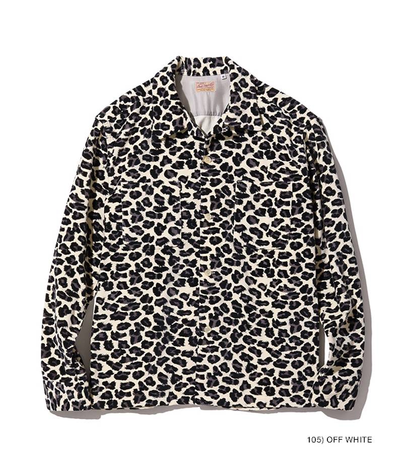 | 高級感のあるベルベット生地を使用したスポーツシャツ。1950年代中期のヴィンテージをもとに、絶妙な大きさのロゼットスポットで構成されたレオパード柄を再現した。実在するイエローに加え、モノトーン調のオフホワイト、鮮やかな発色のブルーも展開。50’sプリントシャツが持つ色気を余すところなく蘇らせている。 | |||||||||||||||||||||||||||||||||||||