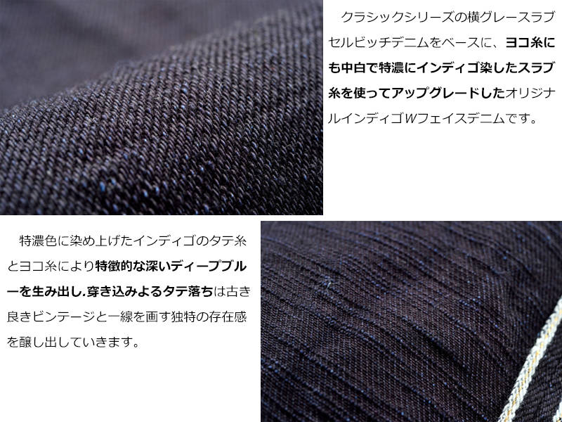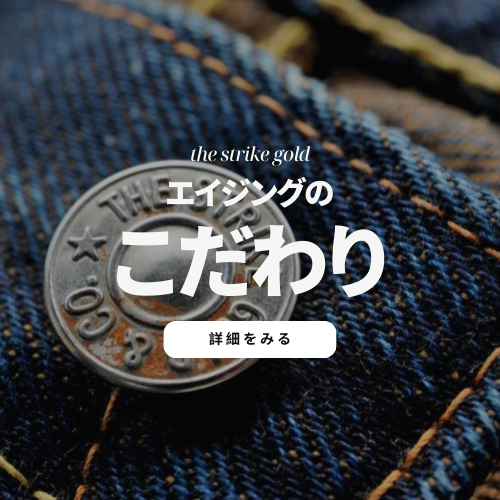The Strike Goldのジーンズは、厳選されたコットンを使用し、旧式のシャトル織機や熟練職人の縫製技術によって作られます。穿くほどに個性が表れ、美しいエイジングを楽しめる一着です。