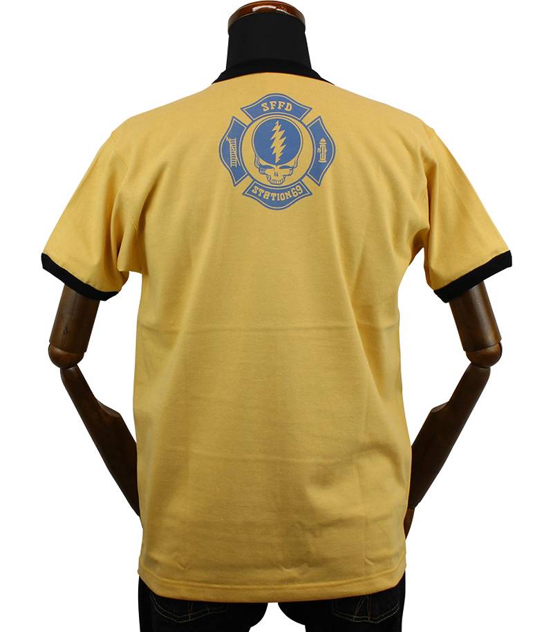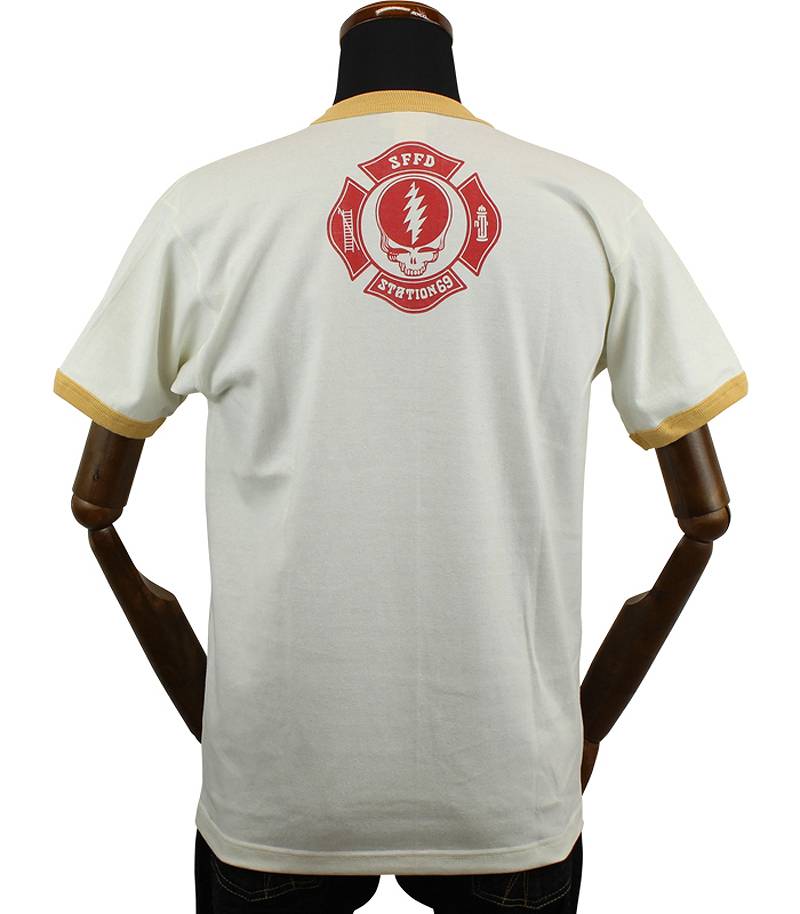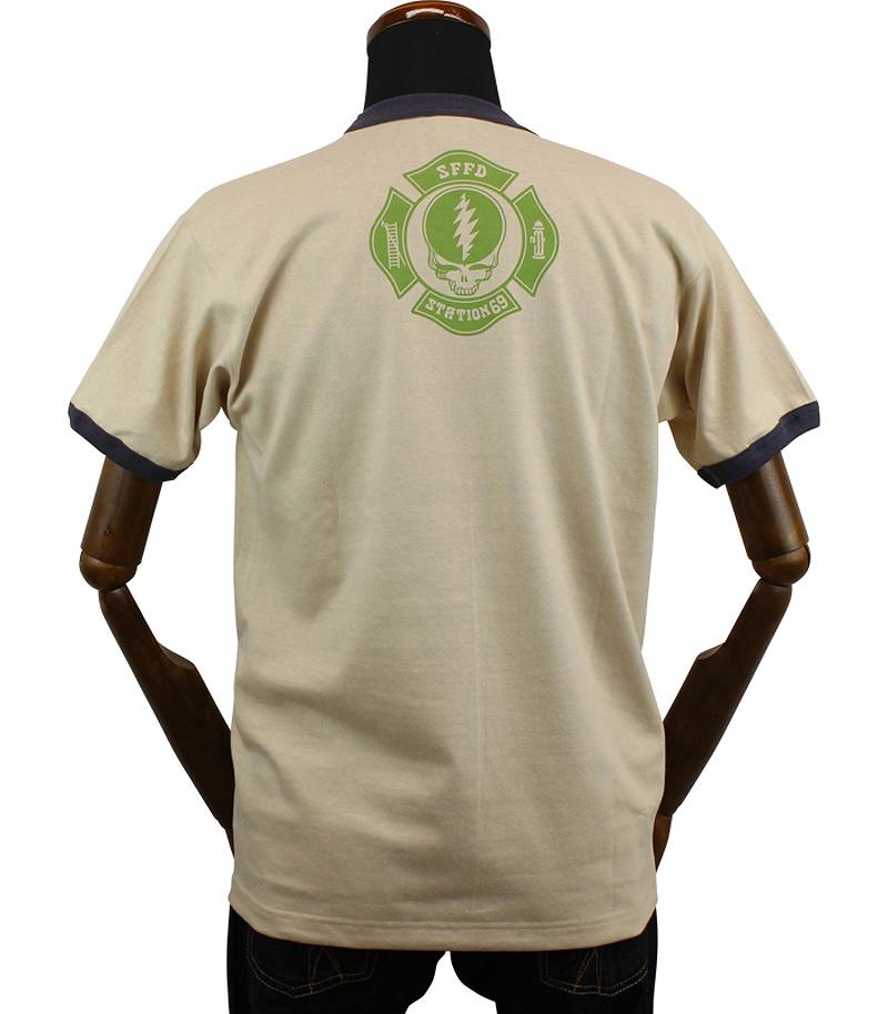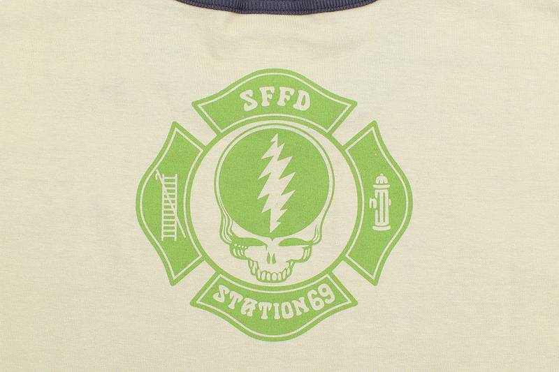 | “DANCING BEAR”をマスコットに起用するサンフランシスコの架空の消防署“STATION 69”分署のロゴをプリントしたリンガーTシャツ。世界で一番リベラルな都市であるサンフランシスコなら、本当にこんな陽気な消防署があってもおかしくはないだろう。 | |||||||||||||||||||||||||||||||