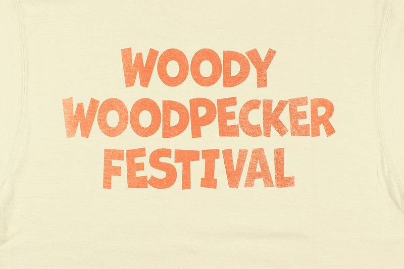 1969年8月15日からの3日間、アメリカのカウンターカルチャーを象徴し、伝説として歴史に名を残すロックコンサートが行われた。「ウッドストック・ミュージック・アンド・アート・フェスティバル」このTシャツの図柄はヴィンテージとして名高い同イベントのポスターをモチーフとしたもの。白い鳩の代わりにウッディ・ウッドペッカーがシレッと寝そべっている。