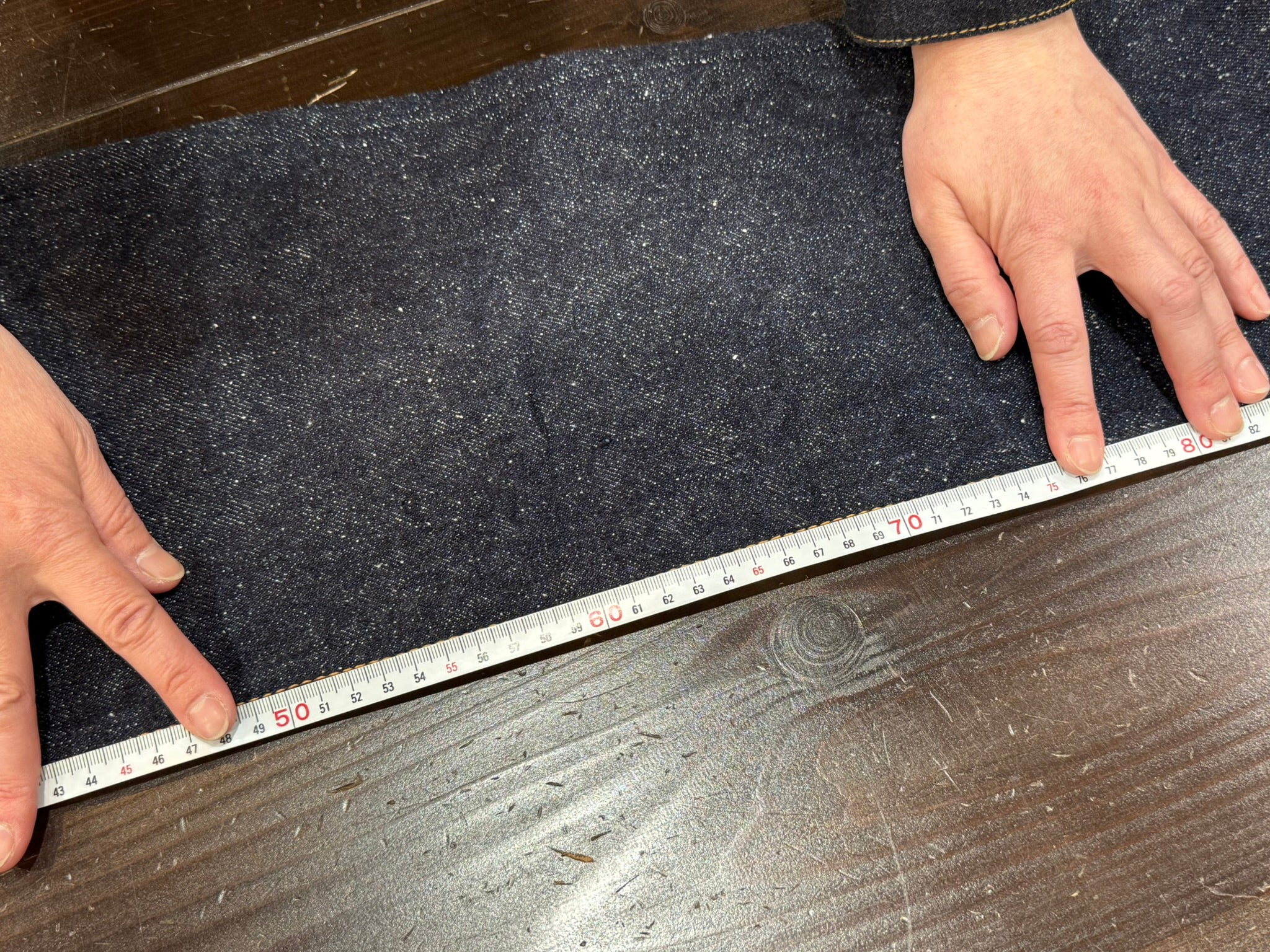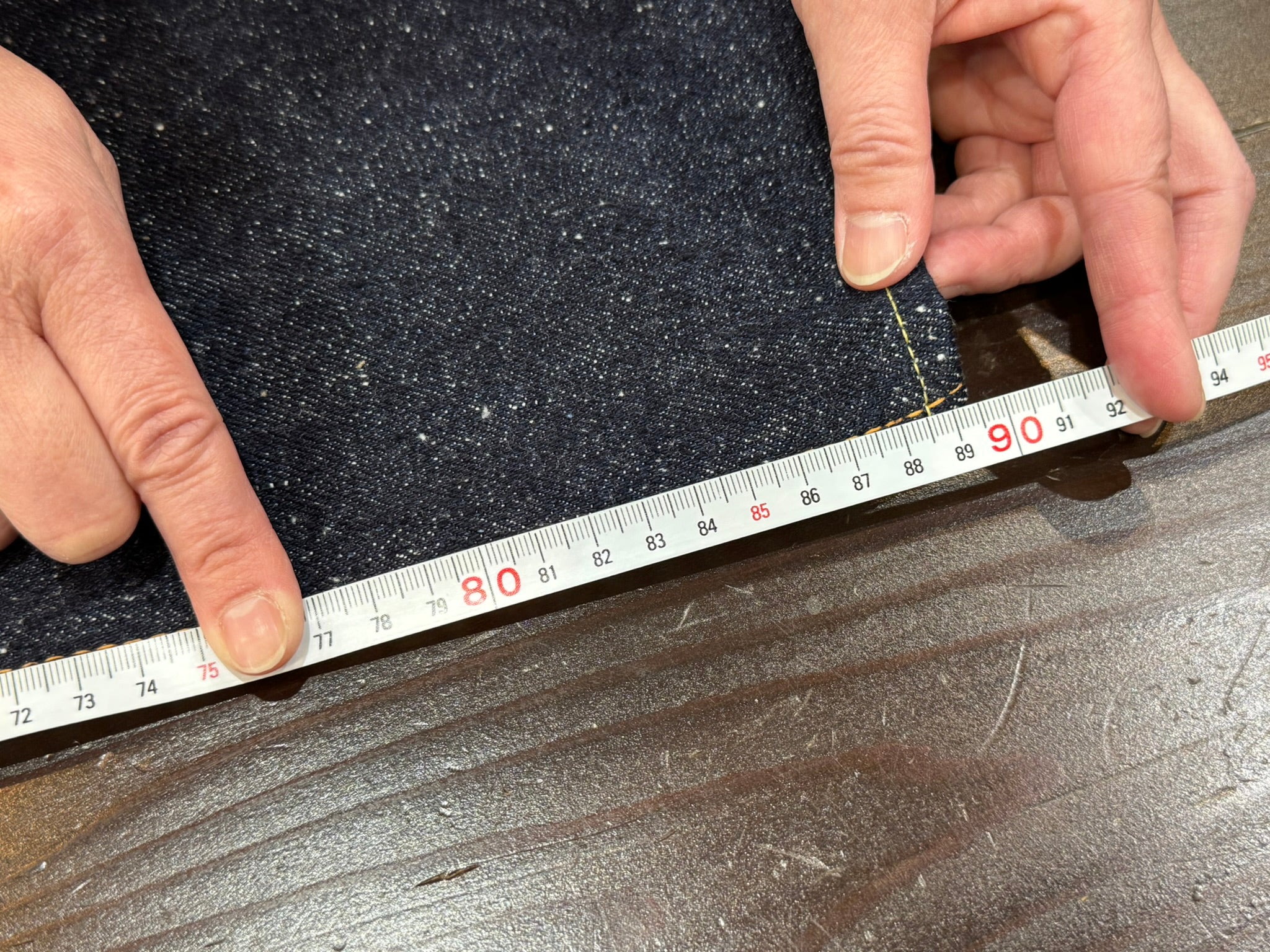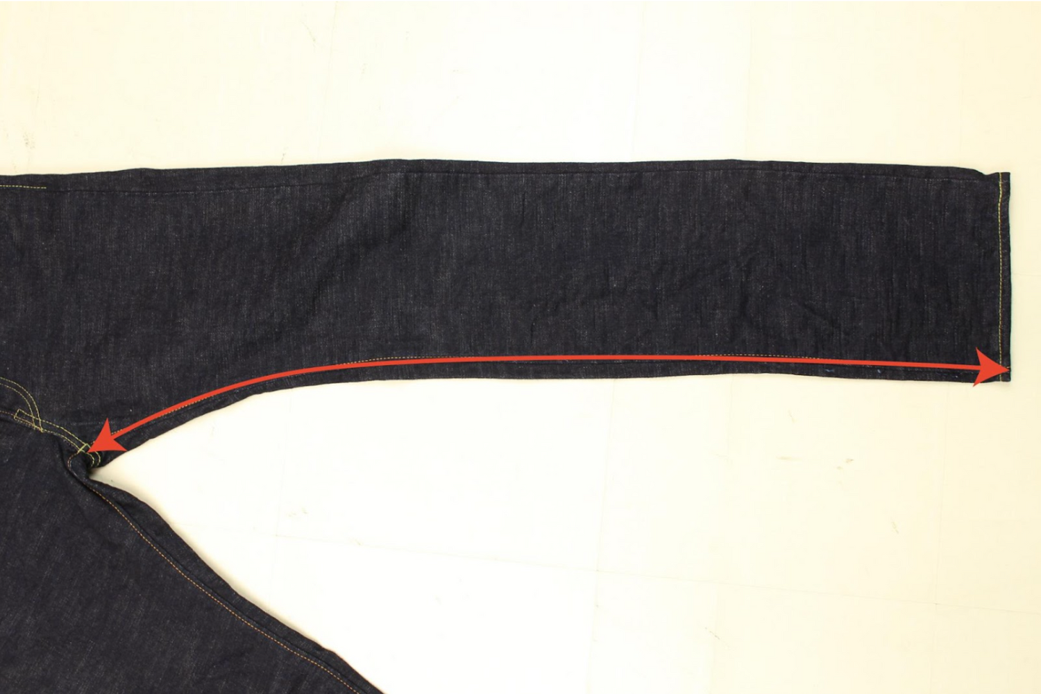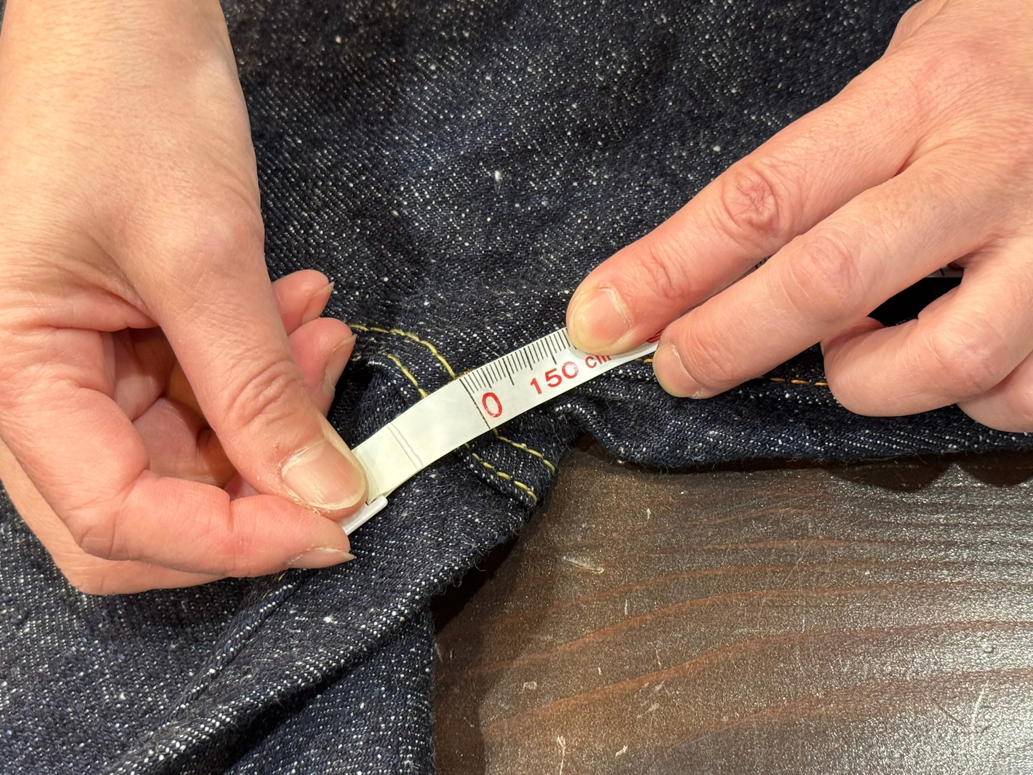 股の縫い目からインシームに沿って計測してください。詳しくは次の動画をご覧ください。