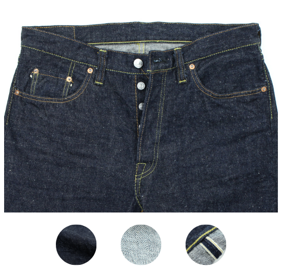 1940~50年代のデッドストックデニムを解析し、当時の素朴な風合いと温かみを現代に再現。オリジナルブレンドのネップ糸を弱テンションで織り上げ、右綾特有のコシと柔らかさを両立。穿き込むほどに立体的でクラシカルで味わい深いタテ落ちを楽しめます。