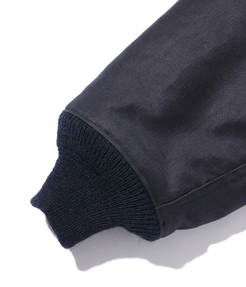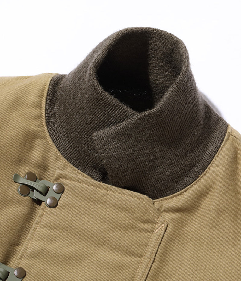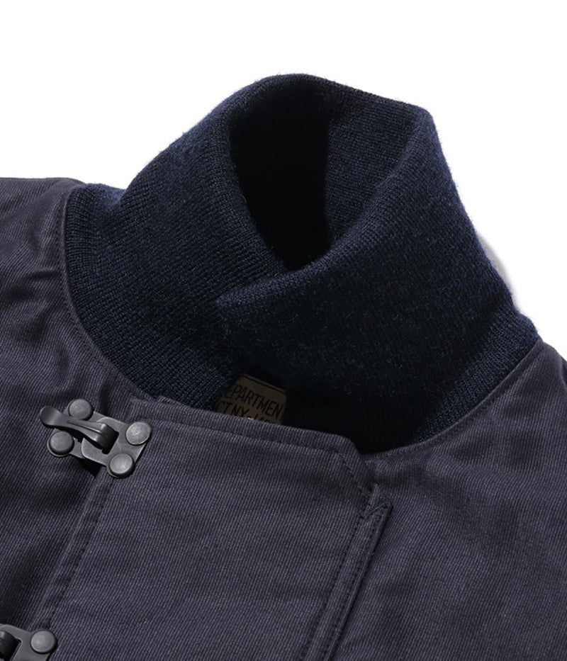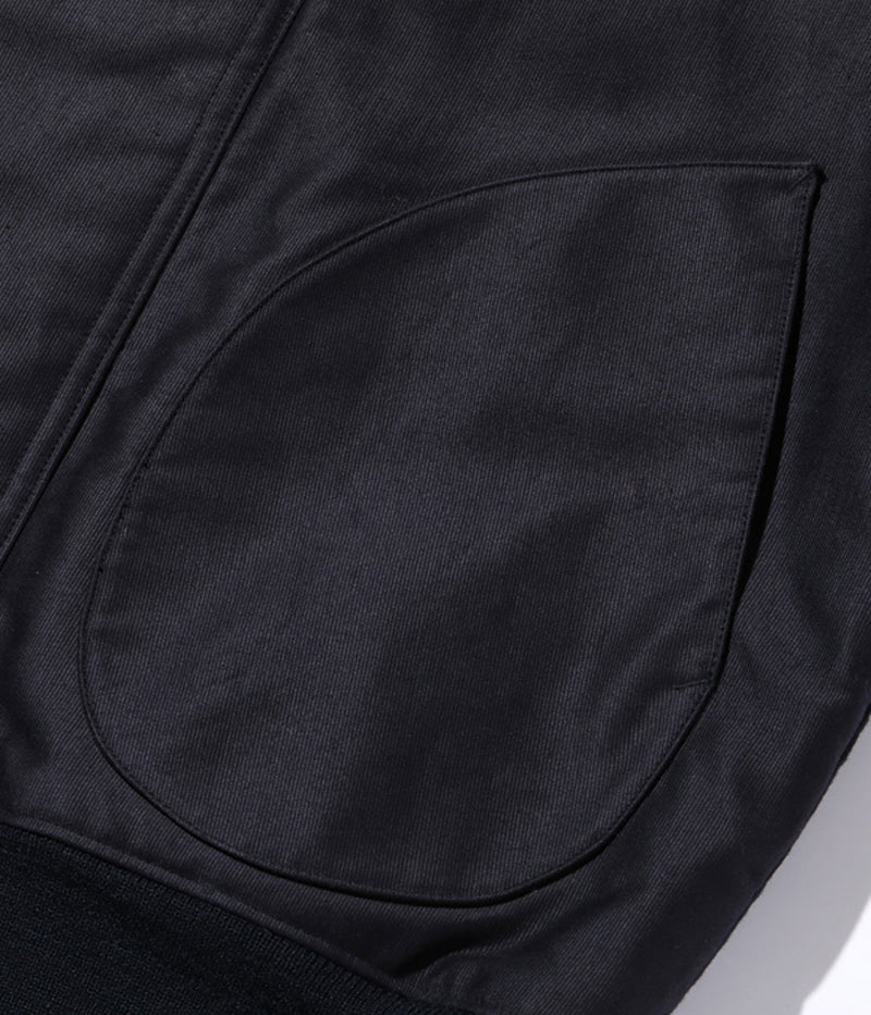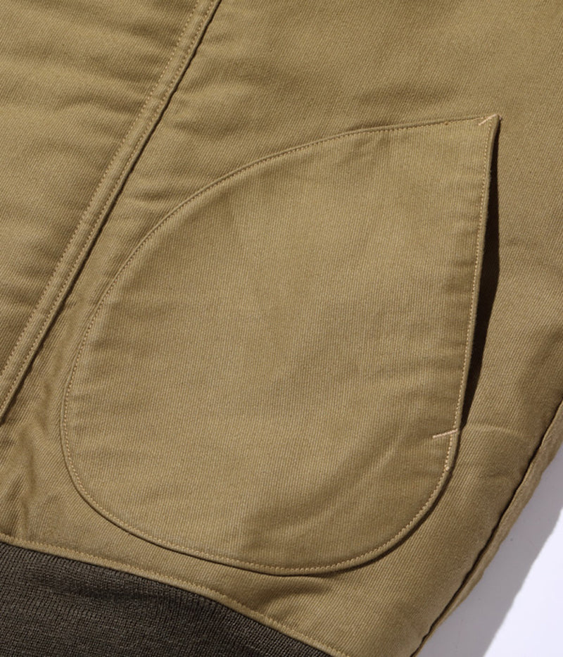 高密度で織り上げられた通称“ジャングルクロス”は、洋上で冷風に晒されるデッキクルー達の身体を守った。初期型のデッキジャケットにはフロント開閉パーツとしてファスナーが採用されていたが、海水の塩分によって錆が生じやすく、後期型はフックタイプに変更された。また、このジャケットの開閉フックには、非常に珍しいプレス式で打ち抜いた真鍮のプレートをリベットで留めたものを使用している。