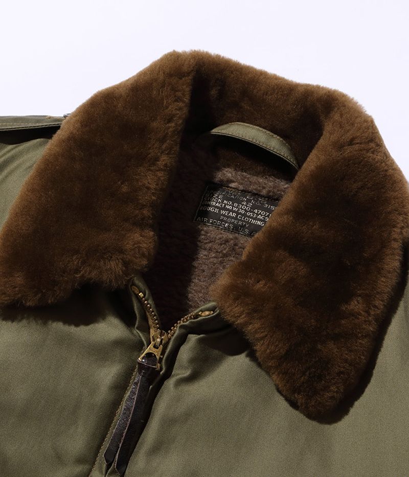 タイプB-10は、1943年に米陸軍航空隊が採用した中温域対応の布製フライトジャケットです。急激な革不足によりコットンツイルが使用され、軽量で保温性の高いアルパカモヘアウールパイルがライニングに採用されました。外観は「AN」シリーズを基にデザインされ、大量生産が可能なモデルです。