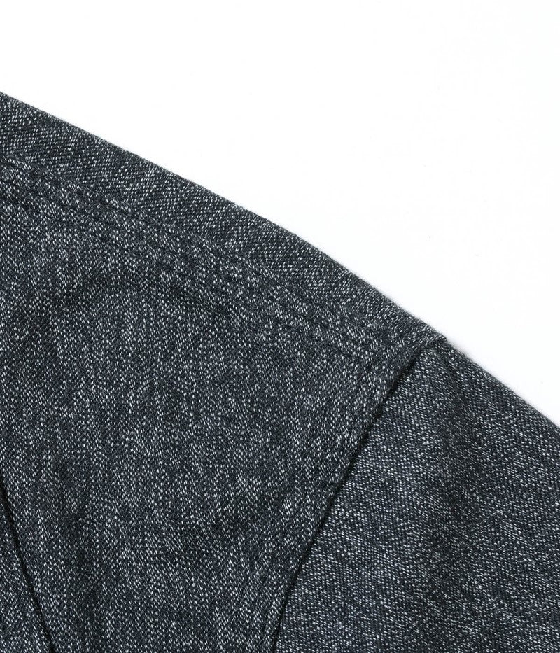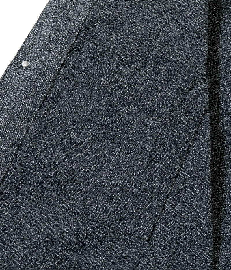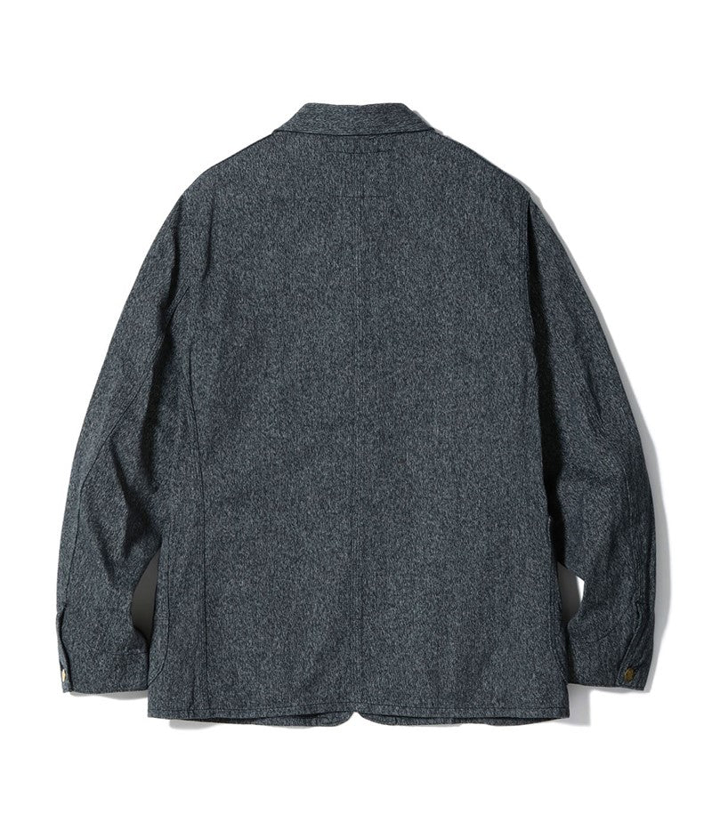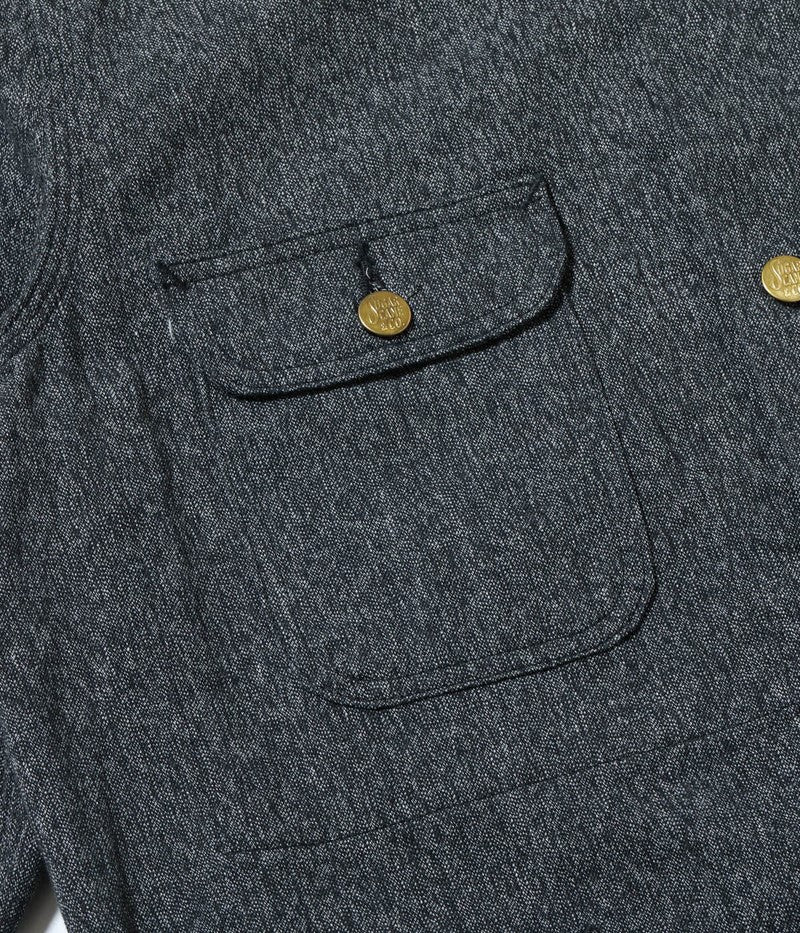 シンプルながらガチャポケ仕様など、ヴィンテージのディテールが備わった第二次世界大戦後のストアブランド系のワークコートとなっている。台襟が省略される前のモデルで、右胸はフラップポケット、左胸は3in1ポケット仕様。大型の腰ポケットは当て布付きで、内ポケットも右胸に装備している。肩や脇、袖ぐりなどは3本針巻縫いで頑丈な作り。