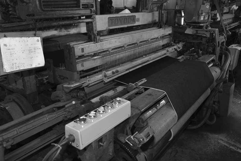 最特濃色に染め上げたインディゴのロープ染色されたタテ糸とヨコ糸のグレー糸を限界ギリギリの打ち込み本数で左綾にて織布をした。