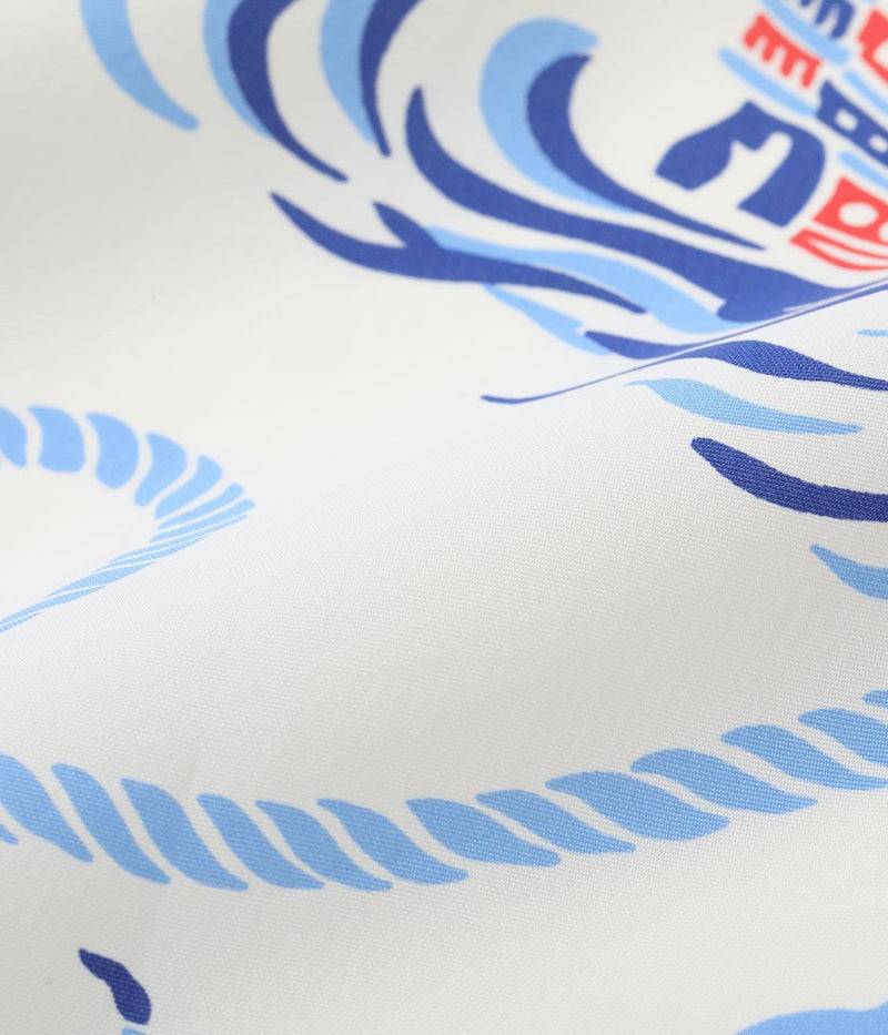 大型の帆掛け船による大海への航海がシャツ一面を使い表現された作品。ロープに羅針盤、夜空に輝く星、船の周りを飛び交うカモメが絶妙なバランスで配置されている。手がけたのはアメリカ本土で数多くのアロハシャツを生み出したブランド「メイド・イン・カリフォルニア」。同ブランドはアメリカ本土でのアロハシャツの爆発的な流行が起こるきっかけを作ったと言っても過言ではなく、人々を引きつける魅力的な作品を次々と世に送り出した。