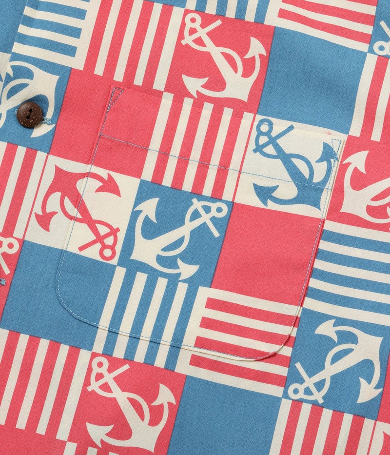 SS39506 / SUNSURF COTTON BROAD OPEN SHIRT “ANCHOR SQUARES”